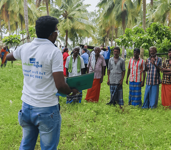 100க்கும் மேற்பட்ட வேளாண் வல்லுநர்கள் கொண்ட எங்கள் குழு, விவசாயிகளுக்குத் தொடர்ந்து வருகை தந்து, அறிவியல் விவசாய முறைகள் குறித்து அவர்களுக்குக் கற்பித்து, அவர்களின் உற்பத்தித்திறனை அதிகரிக்க உதவுகிறது. எங்கள் உற்பத்தித்திறனை மேம்படுத்தும் திட்டத்தைத் தவிர, தொலைபேசியில் வேளாண் நிபுணர், வேளாண் வணிக மையங்கள் (ஏபிசி), பண்ணைக் குளங்கள் அமைப்பதன் மூலம் நீர் பாதுகாப்பு நடவடிக்கைகள், கல்பவ்ரிக்ஷா அறிவு மையம் மூலம் விவசாயிகளுக்கு வகுப்பறை பயிற்சி போன்ற பிற சேவைகளை நாங்கள் வழங்குகிறோம்.